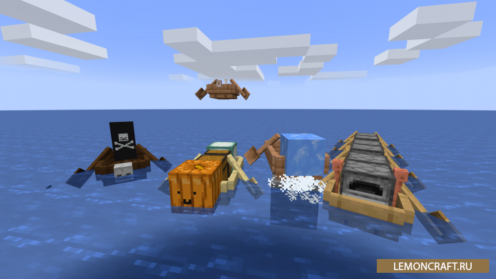 Мод на улучшенные лодки Boats and Beeps добавляет в игру возможность улучшить лодки с помощью ванильных блоков. Вы сможете увеличить их скорость, сможете размещать на них сундуки и, что немаловажно, сможете на них летать.